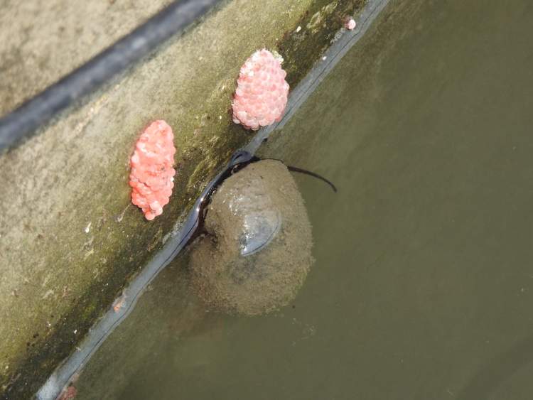 彭越浦大宁公园段的福寿螺及卵块不少。