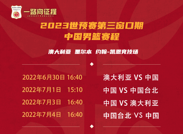 这次的男篮世预赛亚大区第三个窗口期,中国队将一共进行四场比赛,和澳大利亚队和中国台北队各交战两场。