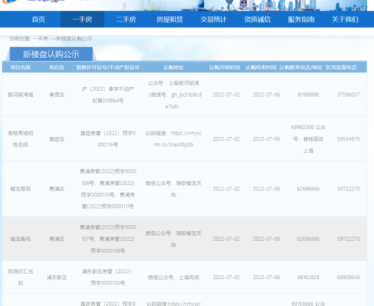 周末5盘全新面市,总计1378套房源 尚昌艳 2022-6-30 来源:周到上海 据网上房地产官方公告称,7月2日将有5盘开启认购,分别是【银河丽湾】(项目名:银河丽湾城)、【碧桂园柏悦翔湾】(南翔秀城柏悦名邸)、【上海蟠龙天地景园】(蟠龙景苑)、【上海蟠龙天地臻园】(蟠龙臻苑)、【同润欣汇名邸】。 截至今日16:00,本月已有44盘公布发布认购提醒,其中32盘已结束认购,7盘正在认购中,5盘即将开启认购。 认购详情如下: 获得更多购房资讯,欢迎扫描下方二维码,关注地产新空微信公众号,或加入地产新空“房友俱乐部”讨论区。 来源:周到上海 作者:尚昌艳 赞一个 (0)