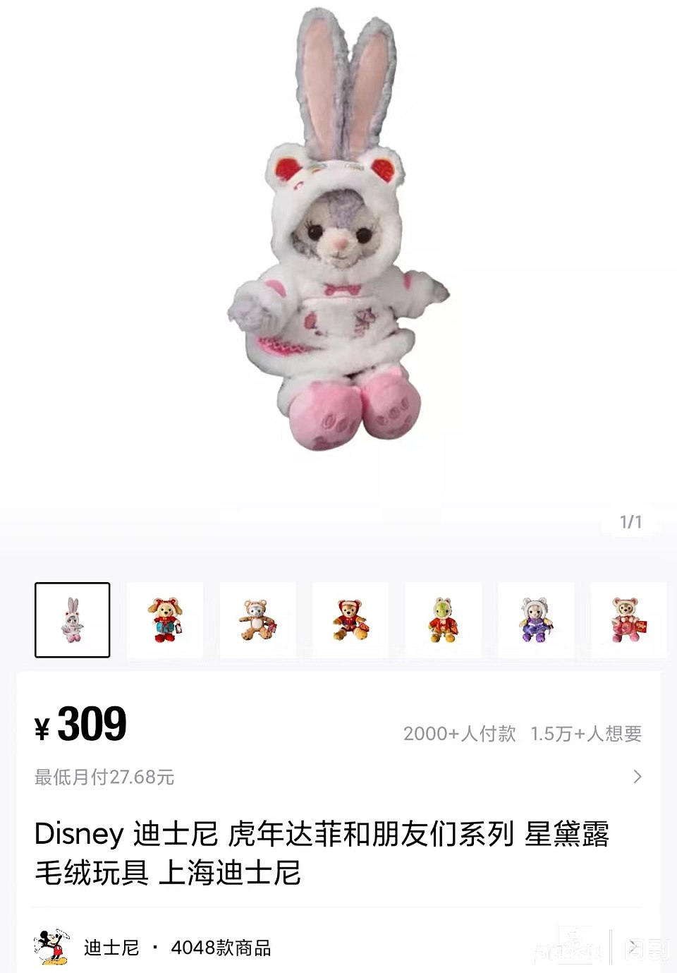 从去年到今年,网购平台上,上迪达菲家族的圣诞系列和新春系列公仔价格起伏不定。“我看着它们涨上去,又看着它们跌下来,像看股市一样。以新春款星黛露挂件和SS号公仔为例,原价分别是139元和219元。
