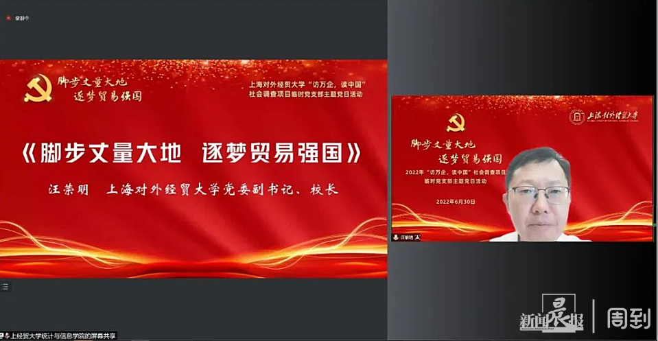 “用脚步丈量祖国大地,用眼睛发现中国精神,用耳朵倾听人民呼声,用内心感应时代脉搏。”在上海对外经贸大学2022年“访万企读中国”社会调查项目的首堂党课上,校长汪荣明以《脚步丈量大地 逐梦贸易强国》为题授导课,带领师生感悟新时代的召唤和上经贸大人的责任与担当。