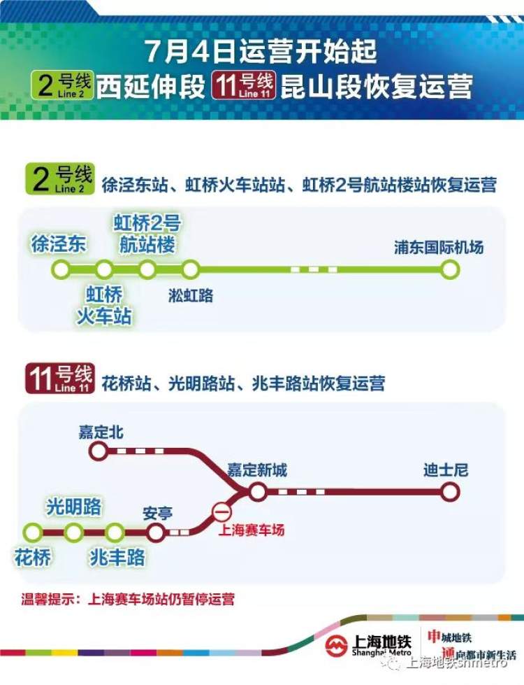 今起2号线西延伸段、11号线昆山段恢复运营