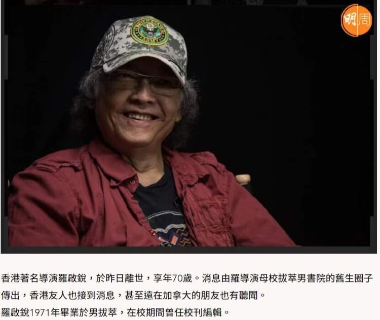 据港媒报道,香港著名导演罗启锐于7月2日逝世,享年70岁。