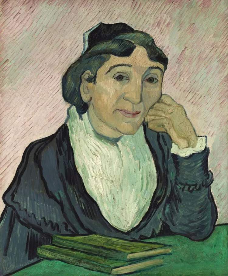 文森特·梵高的《吉努克斯夫人的肖像》是画家生命最后两年创作的系列画作。画面中出现的书,是梵高最喜爱的社会新潮的标志,多角的轮廓线象征着内页丰富的内容,画面中的女主人公正托着脸庞若有所思,营造出了一种浓厚的家庭氛围。高更曾与梵高一起为画中的女主人公绘制肖像,本次展览展出的画作,是梵高参考高更的粉彩画而绘制的。梵高曾在信中多次提及这一系列作品,包括他去世前一个月与姐姐的通信。同系列其余画作如今分别被奥赛博物馆、大都会艺术博物馆等著名机构收藏。
