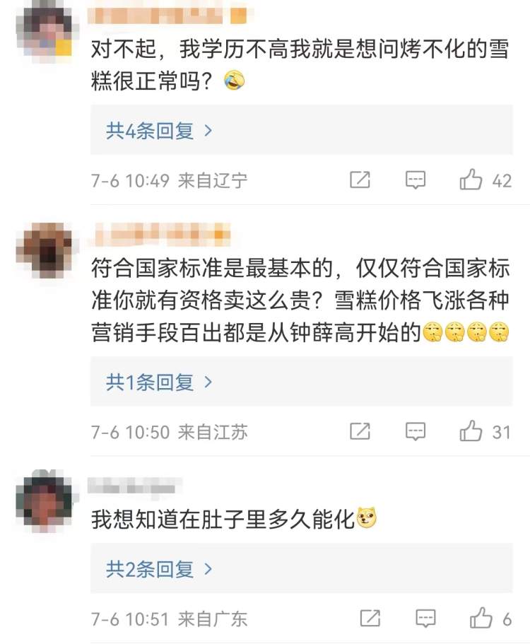 对于钟薛高的这份声明,网友们不太买账,纷纷留言“我想问烤不化的雪糕很正常吗”“我想知道在肚子里多久能融化……”