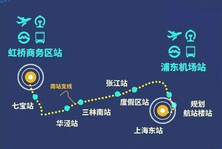 在建的机场联络线全长约68.9公里,沿线设置9座车站。未来,机场联络线通车后,浦东、虹桥两大机场间的通行时间将缩短至40分钟内。