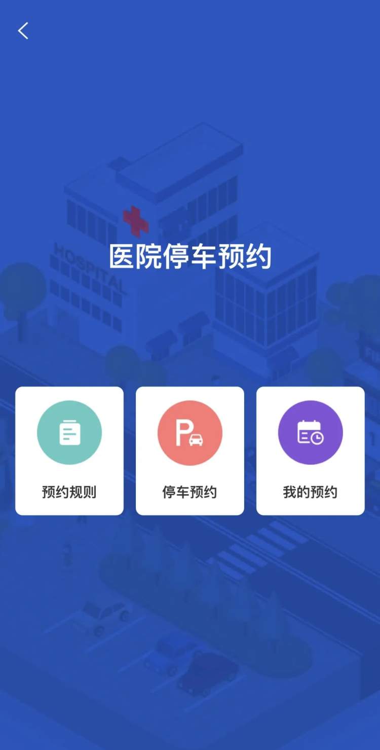 2、在APP、小程序“停车预约”功能中,选择“医院停车预约”;
