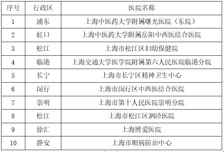 新增上线的10家医院: