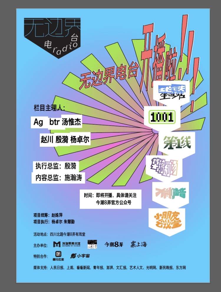 “无边界电台 弄堂声音”是由“粟上海”和“今潮8弄”联合主办的一档全新的文化类网络声讯节目,是“无边界青年创想中心”系列项目的重要部分。