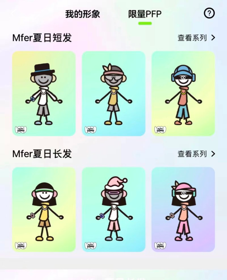 值得注意的是,平台为用户提供了基于Mfer NFT系列二次创作的限量PFP形象(腾讯音乐数字藏品),限量1 万个,限时0.88 元/个,以盲盒形式抽取。