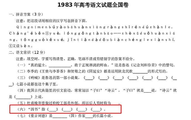 1983年高考语文试题全国卷