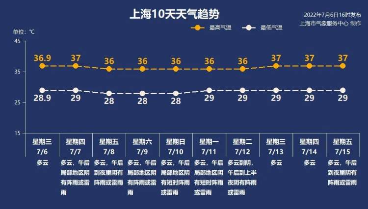 今天是上海今年第7个高温日,11时徐家汇站的实况气温全国第四,全天最高气温达到36.9℃。7月7日开始,上海将陆续迎来中高考,上海气象部门提前部署,提供精细化气象服务全力为中高考护航。