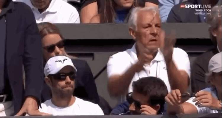 伤病依旧困扰的情况下,纳达尔很快又以3:6丢掉了第三盘,再度在大比分上落后。而他在看台上的父亲,不停地向纳达尔做着手势,示意他应该选择退赛。