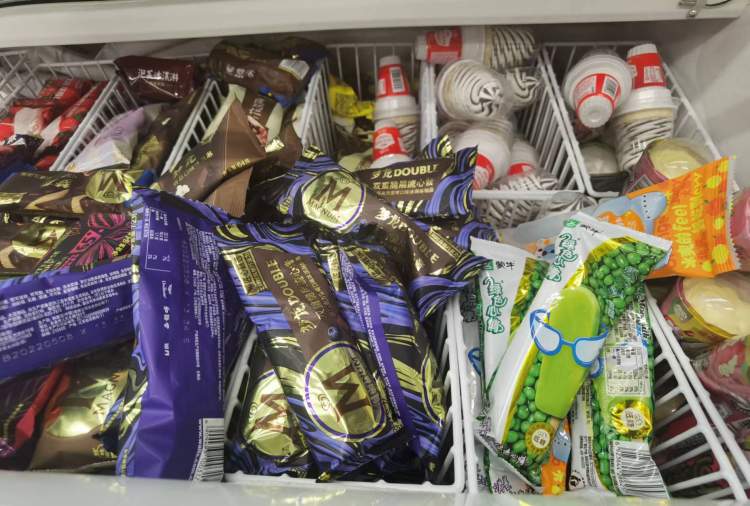 而殷行路上一家门面颇小的冷饮批发店不断有居民前来购买。“这里老牌子冷饮比较多,价钱也实惠的。”一名正在选购的老阿姨表示。