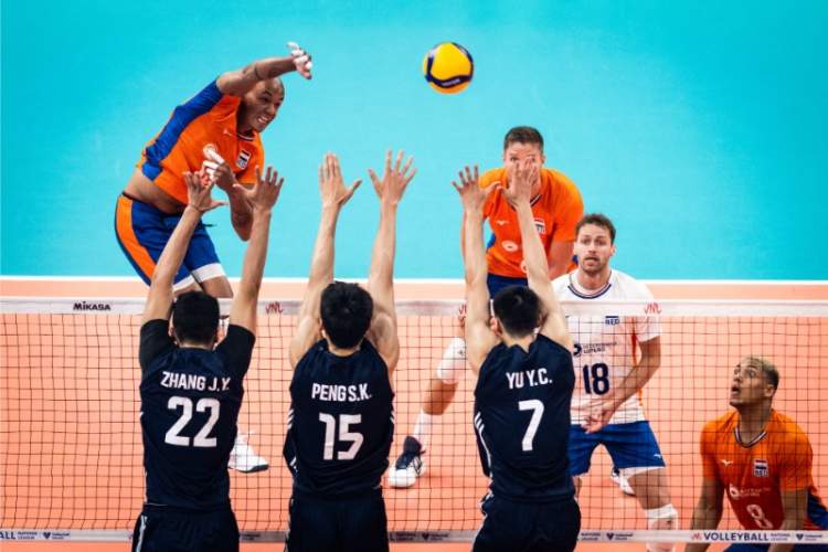 荷兰队则打得顺风顺水,先后以25:12和25:13拿下第二局和第三局比赛。