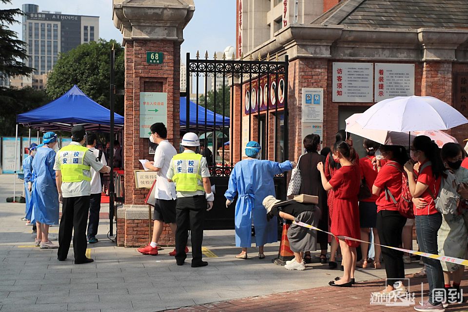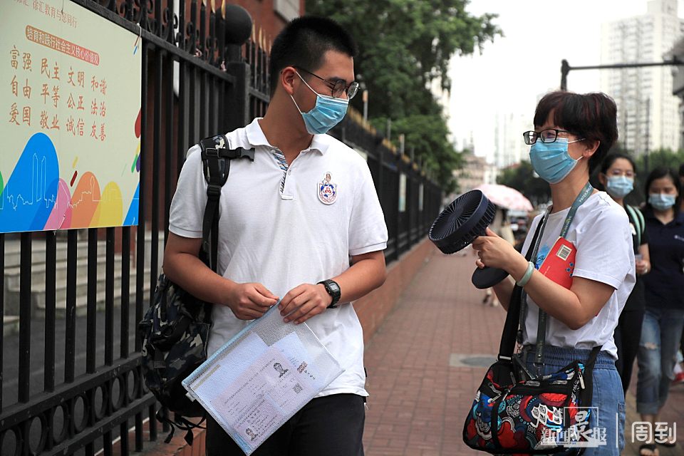 高考遇上高温,家长手持电扇为考生吹风送凉 | 晨镜头 任国强 2022-7-07 来源:周到上海 今天是小暑节气,推迟了一个月的上海高考也正式开考。今年考生除了要做好防疫外,还要面对炎热的天气。记者在徐汇中学考场外看到,考生们则排着队伍一个个验证进考场。 送考的家长和老师再三叮嘱,为考生加油。 由于天气太炎热,不少家长和老师摇着扇子扇风降温,一位家长举着一个电扇为进场的孩子吹风。 送考老师的脸上都挂着汗珠,但他们坚持目送着自己最后一个考生进考场。 来源:周到上海 作者:任国强 赞一个 (0)