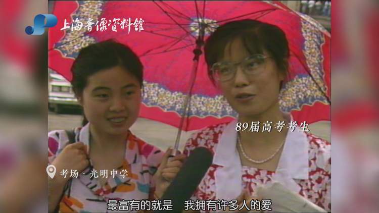 1989年7月,在上海市南洋模范中学的高考考场里,上海电视台记者在考前7分钟随机采访了几位考生。记者抛出了大学志愿、考大学的理由以及梦想等问题。考生们则信心充足地面对镜头回答着。
