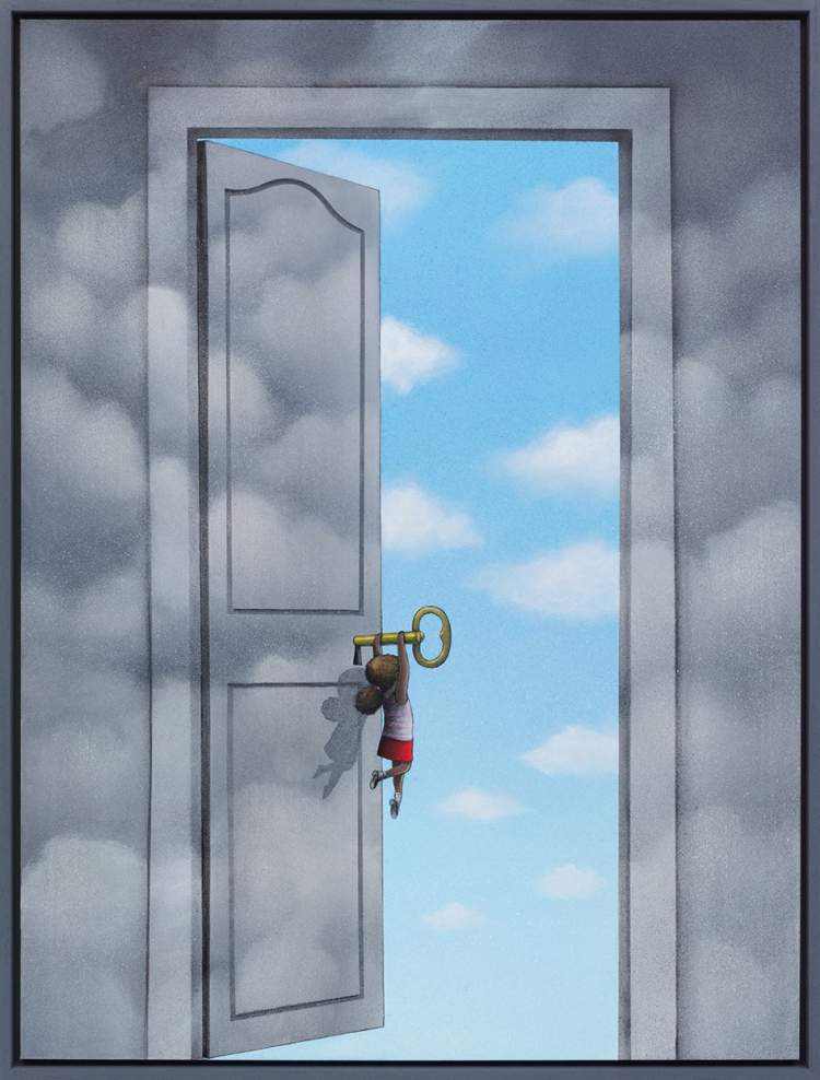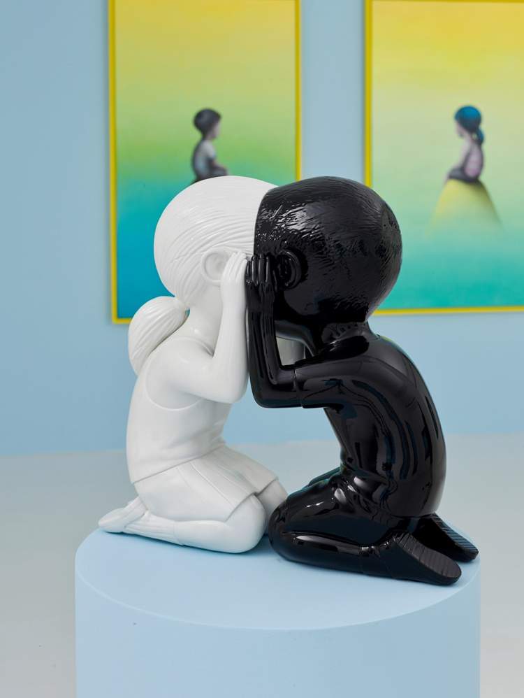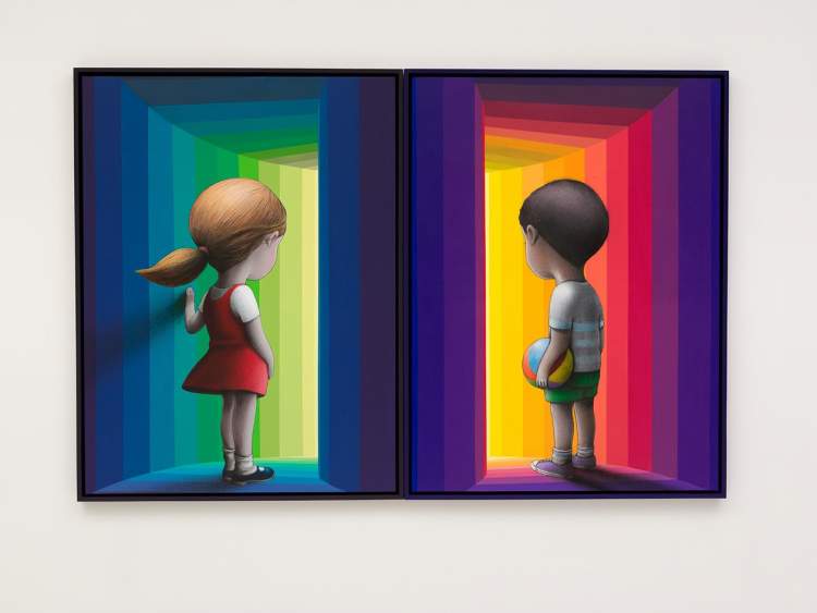 他说,满世界的“画布 ”给与我创作灵感的自由,返璞归真的想象力,童心未泯的表达方式,在我创作中的人物常常沉浸在五彩斑斓的彩色漩涡里,呈现出真实而虚幻又无比丰富的内在宇宙。