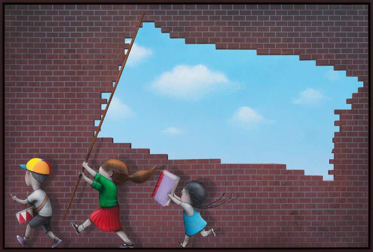 他画笔下的孩子们依旧充满着浪漫和诗意,疗愈并唤醒成年世界的沉重和幽暗。