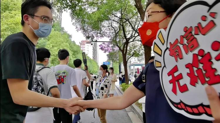 今天(7月7日),上海5万多名考生戴着口罩走进高考考场,迎接人生“重要一笔”。考场门口,等候的是翘首以盼的家长,一些送考的妈妈、女老师还特地穿上旗袍,寓意“旗开得胜”。