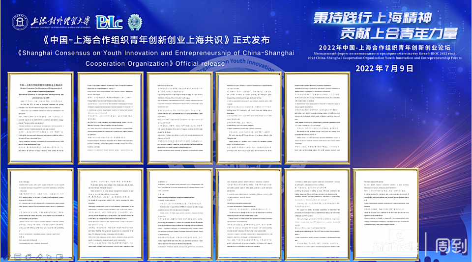 7月9日,在沪举办的2022中国-上海合作组织青年创新创业论坛上,对外发布了中英俄三语《中国-上海合作组织青年创新创业上海共识》,并发起成立中国-上海合作组织创新创业学院。