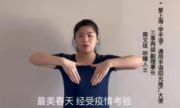 周文佳想着,决定用手语表达此时此刻听障人的心情。