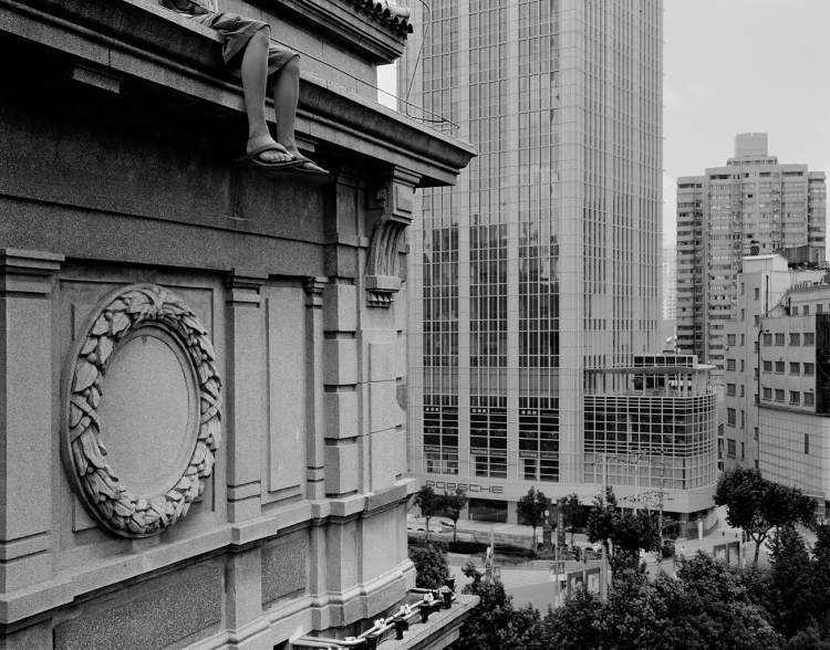 艺术家胡介鸣在作品《儿子》中,将还显瘦弱的儿子置于宏阔的城市空间中,呈现了人与城市的关系,但也似乎展现了父亲对儿子未来的关注和展望。