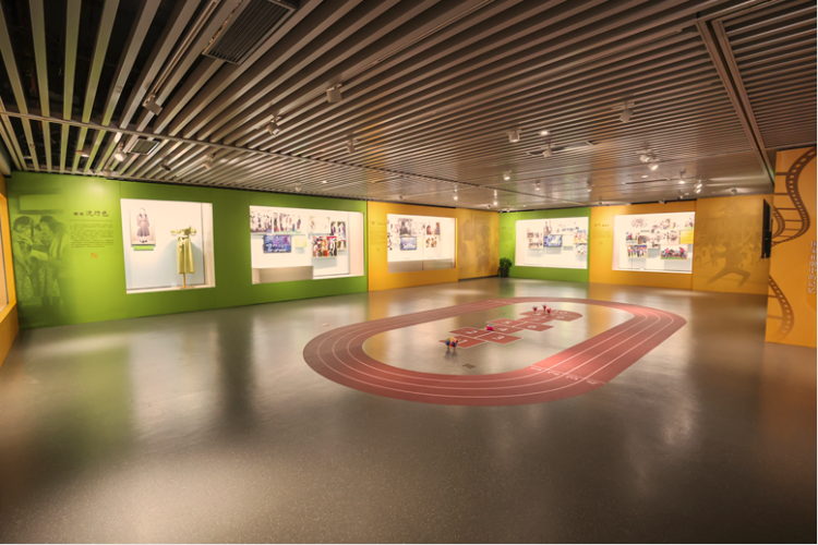 二楼展厅还铺设了模拟操场,观众可以跟随熟悉的广播体操分解动作示意图及教学视频,伸腰踢腿,唤醒青春的记忆。而操场中间的“跳房子”和毽子等这些儿时的游戏,更是满藏着珍贵的回忆与简单的快乐。
