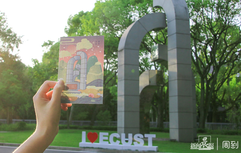 此外,还有手绘华理建筑明信片,如梦如幻的背景中华理地标建筑巍然耸立,寓意着学校将带领学子们在知识的海洋中乘风破浪。