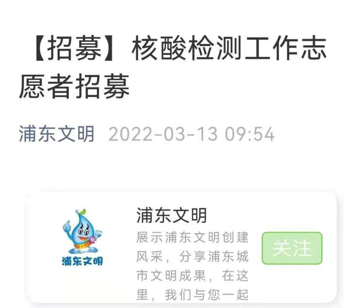 我是3月13日上午10点看到这则招募信息的。大概11点左右,我就打了联系人电话,我说我没有PCR证书(PCR,中文名“聚合酶链式反应”,是一种用于放大扩增特定的DNA片段的分子生物学技术。按照国家规定,只有具备PCR上岗证的人员,才能从事核酸检测工作),但我做过5年实验室,整个流程都是了解的,你看我行不行?对方立刻问:那你下午能不能来上岗?