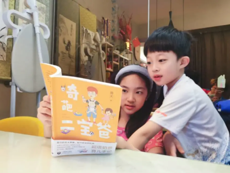 孩子在看《奇葩二宝爸:超级奶爸育儿手记》(上海教育出版社,蒋天著)