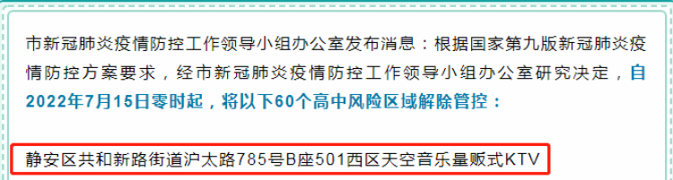上海发布7月14日晚上推送“7月15日零时起,上海60个高中风险区域解除管控”