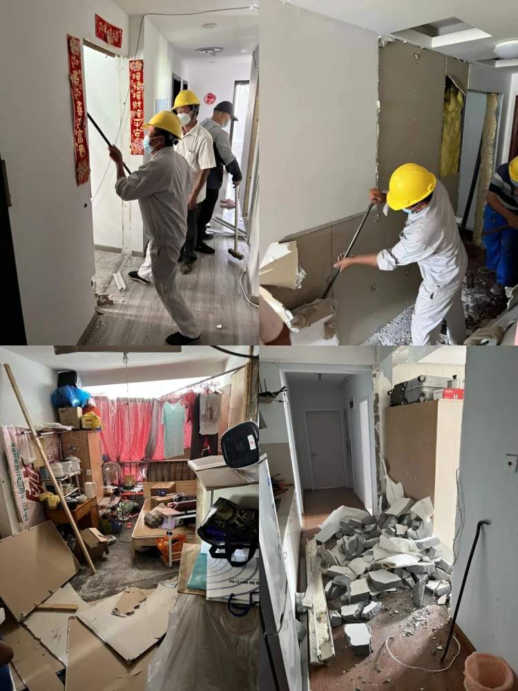 近日,万里街道社区平安办牵头,通过疫情防控期间对居民区房屋出租底册的排摸情况,结合对12345市民服务热线工单的梳理,逐户上门核查,对辖区内存在的群租问题进行现场告知、张贴整改通知单,并于6月底联合万里城运中心、万里派出所、万里综合行政执法队、各居委会、物业等部门,对辖区内的7户群租进行专项整治,共拆除违法隔间7间,搬离高低床5张,自行整改2户。同时,对租户现场进行了法规宣传和安全教育,消除了安全隐患。