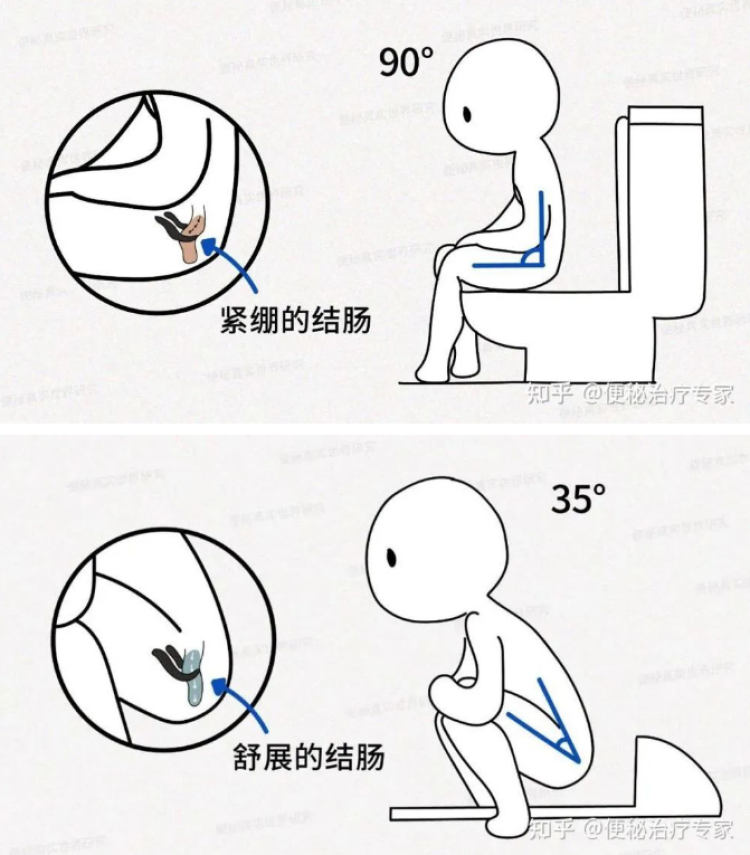 而事实上,我们在坐便的时候,只需在脚下加个小板凳,并且保持身体前倾,就能达到这个既舒适又通畅的“最佳排便姿势”了~