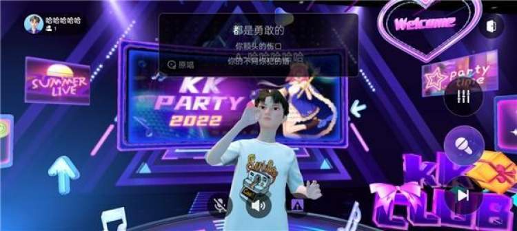 此外,KK直播还对虚拟K歌房内的交互进行了革新,用户可以控制自己的虚拟形象在空间内自由穿梭、语音聊天,不仅能在线点歌,还能进行音乐派对、K歌挑战等等玩法。