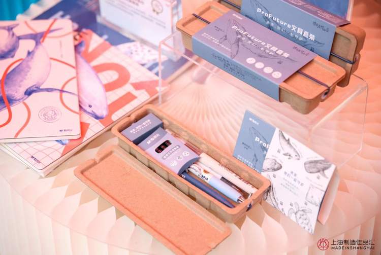据现场工作人员介绍,该系列包装套盒采用可循环的再生纸浆制作而成,具有良好的可降解性;其中的植物残渣中性笔,笔杆部分材质来自甘蔗、小麦、杉木等植物残渣,不同于传统塑料材质,不仅对废弃植物残渣合理利用,又部分可降解,有效降低碳排放。