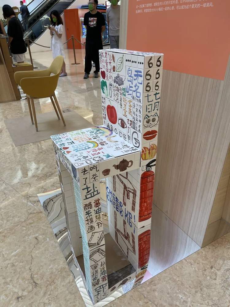 当然啦,避暑纳凉还是室内更合适,商场南区一楼大中庭还呈现了艺术家商亮的《沙发人No.3》、丹尼尔·布伦的《Losange 1,Mars》等等作品,都很适合合影打卡哦~