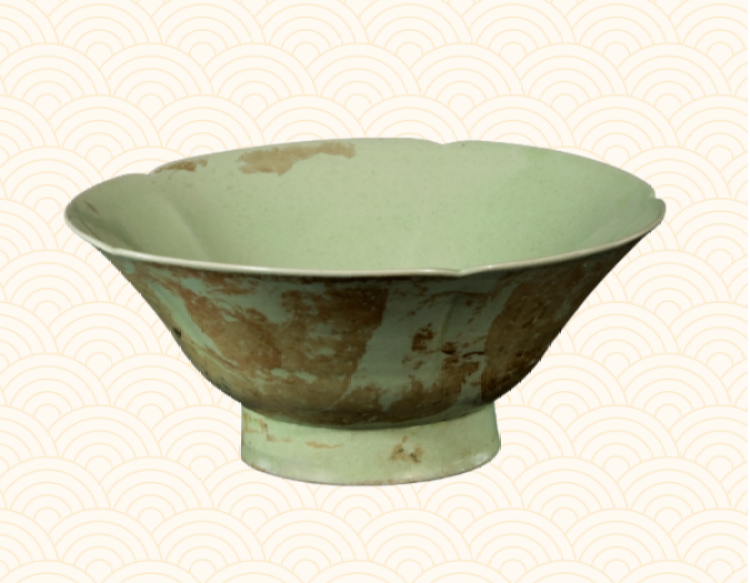 这件瓷碗的尺寸也非常大,制作精美。历史上曾记载过这件秘色瓷,业内也众说纷纭,但并不知道它的庐山真面目,秘色到底是雨过天晴色还是一种绿草的颜色?瓷碗到底是什么样的一个形态?一直没有得到印证,只有在法门寺塔基地宫发掘之后,随着这批瓷器的出土,才印证了唐代宫廷所要求制作的秘色瓷的真正形态,所以这是一件非常重要的文物。