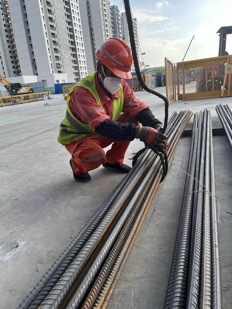 每天下午,骄阳似火,焊接飞溅的火花也透着阵阵热气。行走在钢筋网片上的施工人员如同“铁板烧”。“这些暴晒过的钢筋,表面温度至少在60℃以上,不戴手套肯定要被烫伤。”施工人员表示。