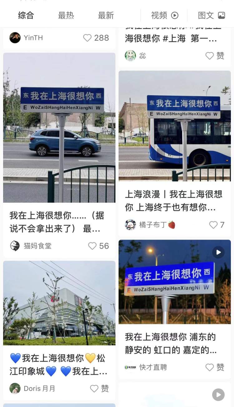 微博、小红书上,不少人特地去打卡“我在上海很想你“指示牌