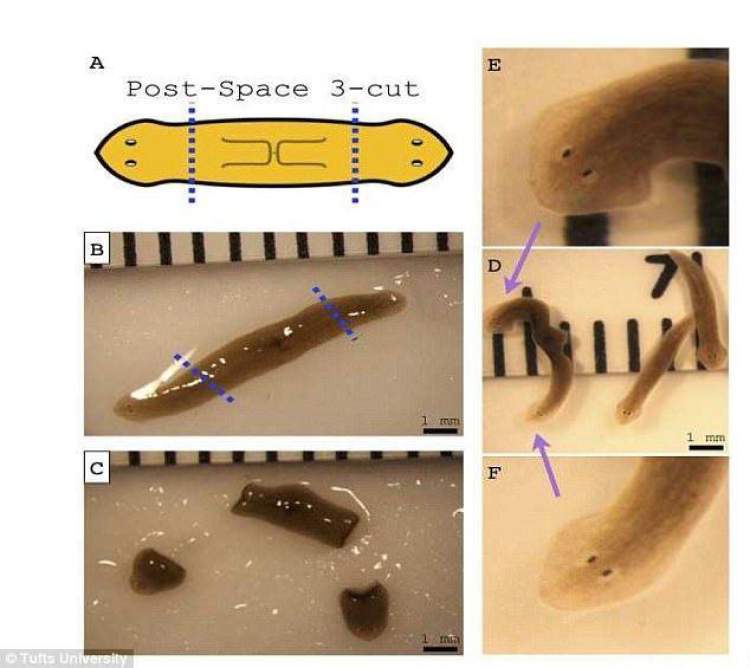 惊奇的一幕出现了,一条身体被拦腰切断的三角涡虫,多长了一个头!