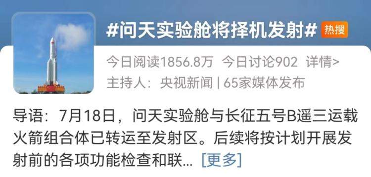今天,#问天实验舱将择机发射#的话题令人期待,也心潮澎湃。