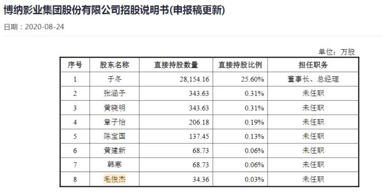 公开资料显示,毛俊杰,1982年生,毕业于中央戏剧学院2002级表演系本科,中国内地女演员。2016年在古装剧《芈月传》中饰演孟赢。毛俊杰还直接持有博纳影业34.363万股,占其总股本0.03%。