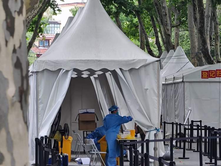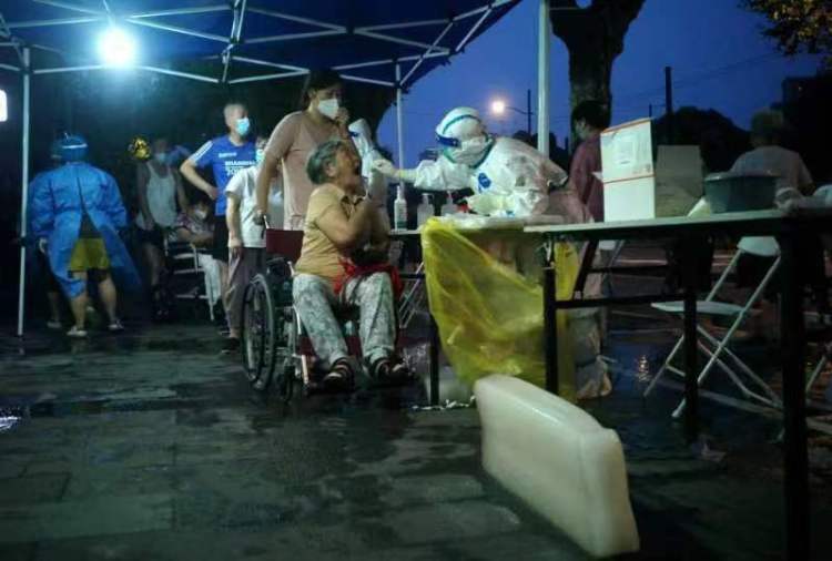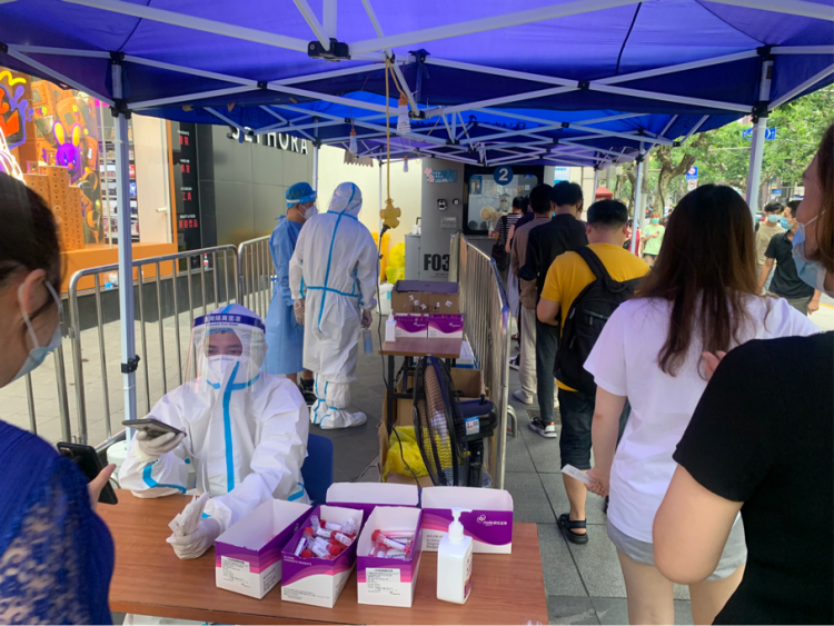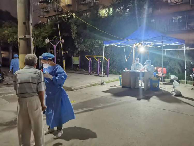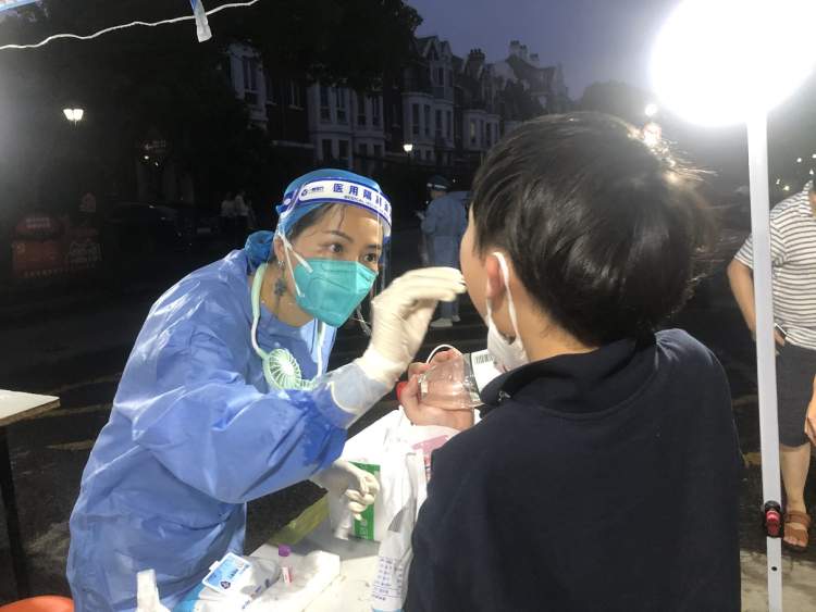 7月18日,浦东新区林山小区、浦东新区惠德新邨、杨浦区长阳新苑和杨浦区殷行路430弄都进行了全员核酸筛查,采样员均穿着“大白”上岗,戴着N95口罩、防护面罩和一次性手套进行采样。