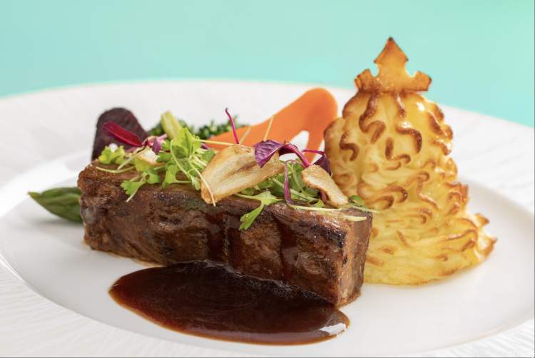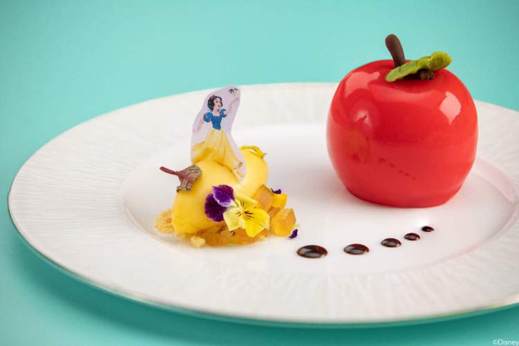皇家宴会厅中的用餐区皆以不同公主命名,而此次皇家宴会厅推出了全面更新的公主主题菜单。在迪士尼主厨的创意发挥下,从灰姑娘的马车到白雪公主的红苹果,一个个公主的故事被完美地融入菜单中。