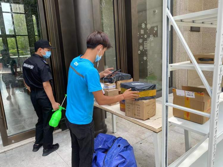 而在实际操作中,因为快递小哥的服务规范以及居民的需求不同,也导致送货时服务标准不一。在浦东东方城市花园二期,所有快递消杀完成后,小哥们开始集中派送,一些快递被小哥放到了楼栋下的货架上,还有些直接送到了家门口,执行的标准并不统一。一名小哥告诉记者,有时候他们送货上门一些业主还会有些担心,所以他建议居民可以在备注里标注一下是否需要上门。