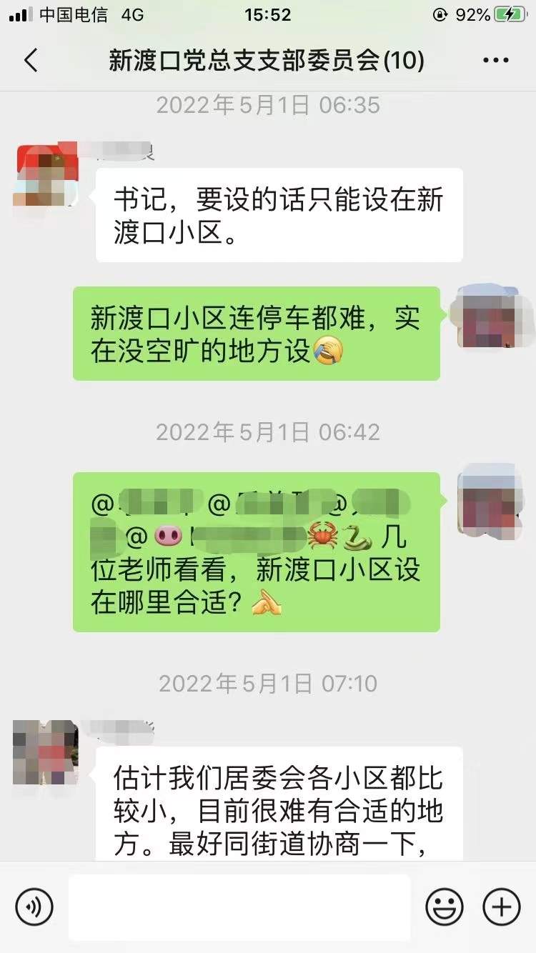 常态化核酸检测亭的安装是疫情防控的需要,也是一项便民措施,而如何合理、正确地设置检测亭,需要广泛征求居民意见。面对这一难题,新渡口居民区通过由社区多方代表共同组成的微信群,让大家各抒己见、畅所欲言。普四一委所辖汽车公寓小区屋面及相关设施改造工程的征询工作因社区封控而耽误了进度,在党总支、居委会的提议下,大家通过线上讨论公示以接龙的方式完成表决。中江居民区的车棚改造工程,同样在大家线上的群策群力下,确定了最终的方案。