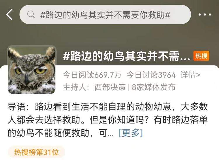 今天,#路边的幼鸟其实并不需要你救助#的话题冲上热搜,让很多热心的人类颠覆认知。