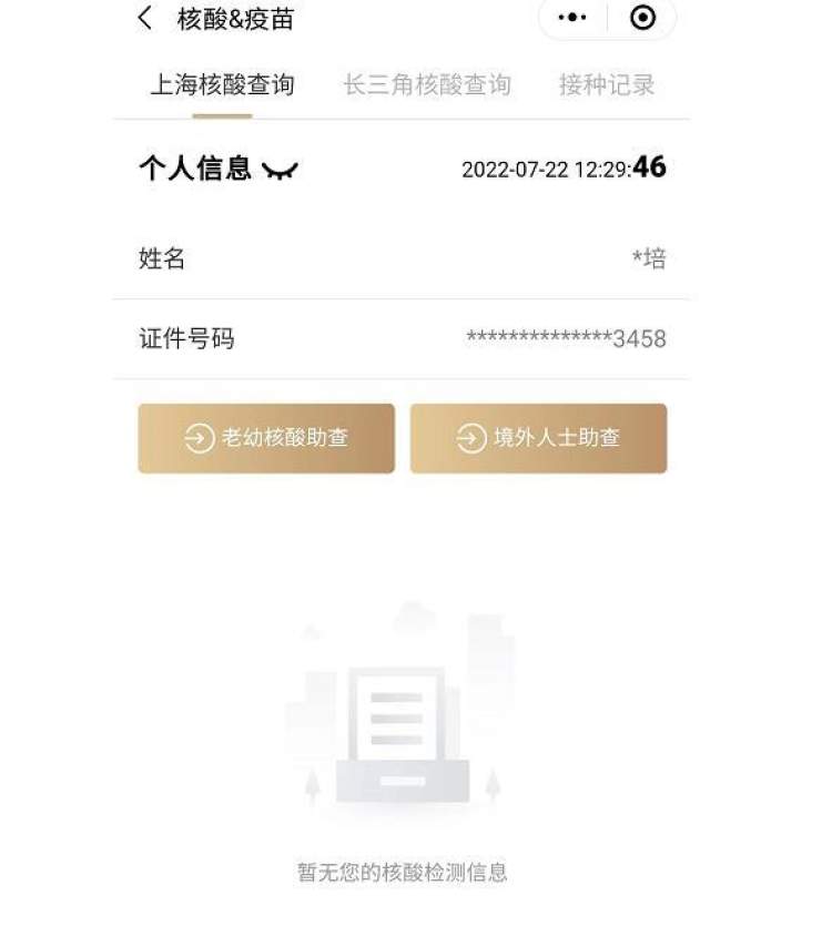 ■陈峰的核酸检测记录:因为半个月前离开上海,已显示为空