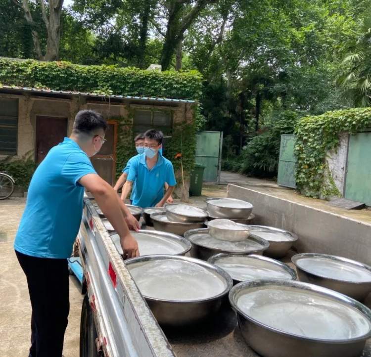 在动物园里有一个地方始终“热力”不降,那就是动物们的“中央厨房”——上海动物园饲料配送中心。饲料配送中心除了要承担全园5000余只动物的口粮采购、储存、分发配送的工作外,还有一个熟食间岗位,岗位环境温度35+℃,两台蒸箱旁边的温度更高达60℃!而这个“高温”岗位出产的正是不少动物都喜爱的窝头!